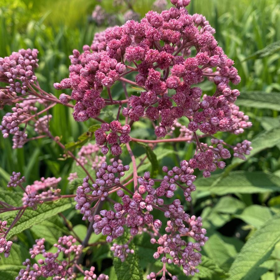 Origin/Distribution: This was a chance seedling of Eutrochium fistulosum discovered by Kind Earth Growers in 2017, and which they have developed and introduced as 'Jojo'. It is shorter and more compact than the species. The species, Eutrochium fistulosum (Hollow Joe Pye Weed) is native to southern Maine, and can grow over 6.5 feet tall in the right conditions.