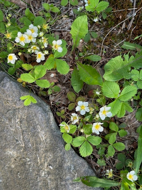 More: Well, everybody loves the berries, including dogs. When us kids would go berrying with our mother in the fields around our house in Standish, our German Shepherd would plunk himself down in the best patches and slobber all over them. Fragaria virginiana is the larval host for (among many others), the Grizzled Skipper, Pyrgus centaureae, Smith's Dart, Xestia smithii, the Purple-lined Sallow, Pyrrhia exprimens, the Crocus Geometer, Xanthotype sospeta, and the Gray Hairstreak, Strymon melinus, all of which are native to Maine. Tarnished plant bugs, leaf rollers, slugs, strawberry weevils, aphids, spider mites, and nematodes are also supported by this plant. Everybody's gotta eat whether they have pretty wings or not. The leaves and root have been used medicinally. Makes a great ground cover or lawn replacement. I am thinking violets, Danthonia spicata, Luzula acuminiata, and Penstemon hirsutus along with strawberry would make an amazing mixed ground cover. Hmmmmm.