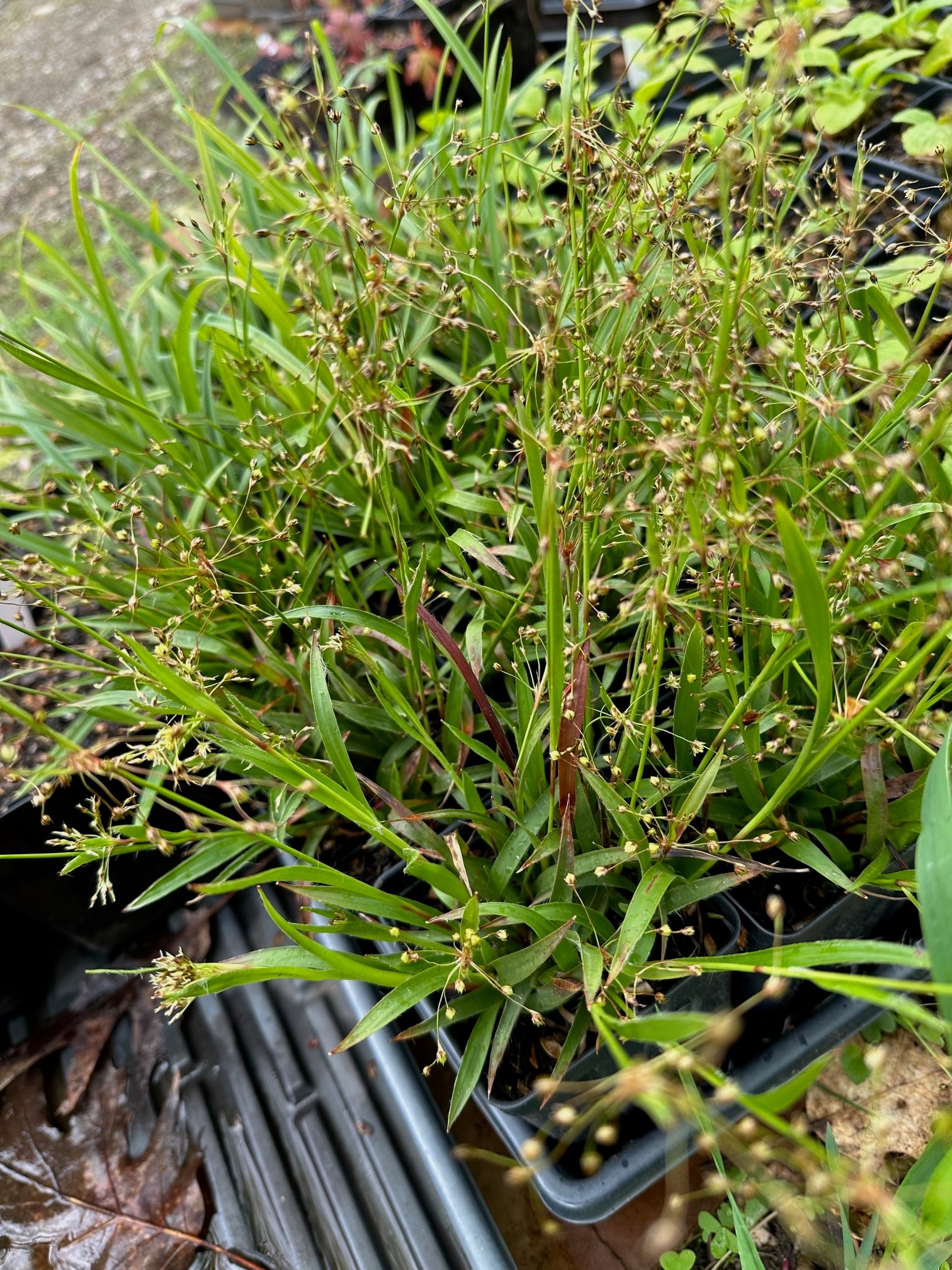 More: this is an excellent and underused rush that works well as part of a shady, low-growing matrix. I think it has ground cover (living mulch) potential as well. So far, it has been very adaptable and accommodating in the test gardens here at Honey Petal Plants.