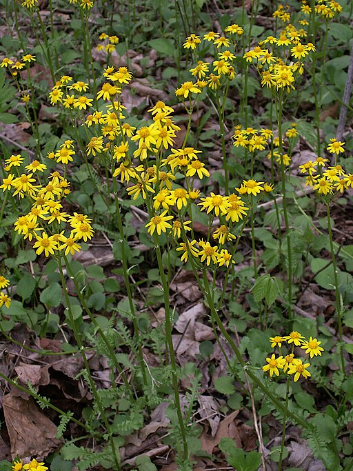 More: This is an underutilized and easy-going native plant. It interweaves well with other plants in many types setting and makes a good ground cover. The perky yellow flower stalks can be removed after flowering (and setting seed!) right back to the leaves, which are ground-hugging and add much to the living mulch layer of our understory. Has been used medicinally. The leaves and roots have been used medicinally. However, many ragworts also contain toxic alkaloids, so proceed with caution.