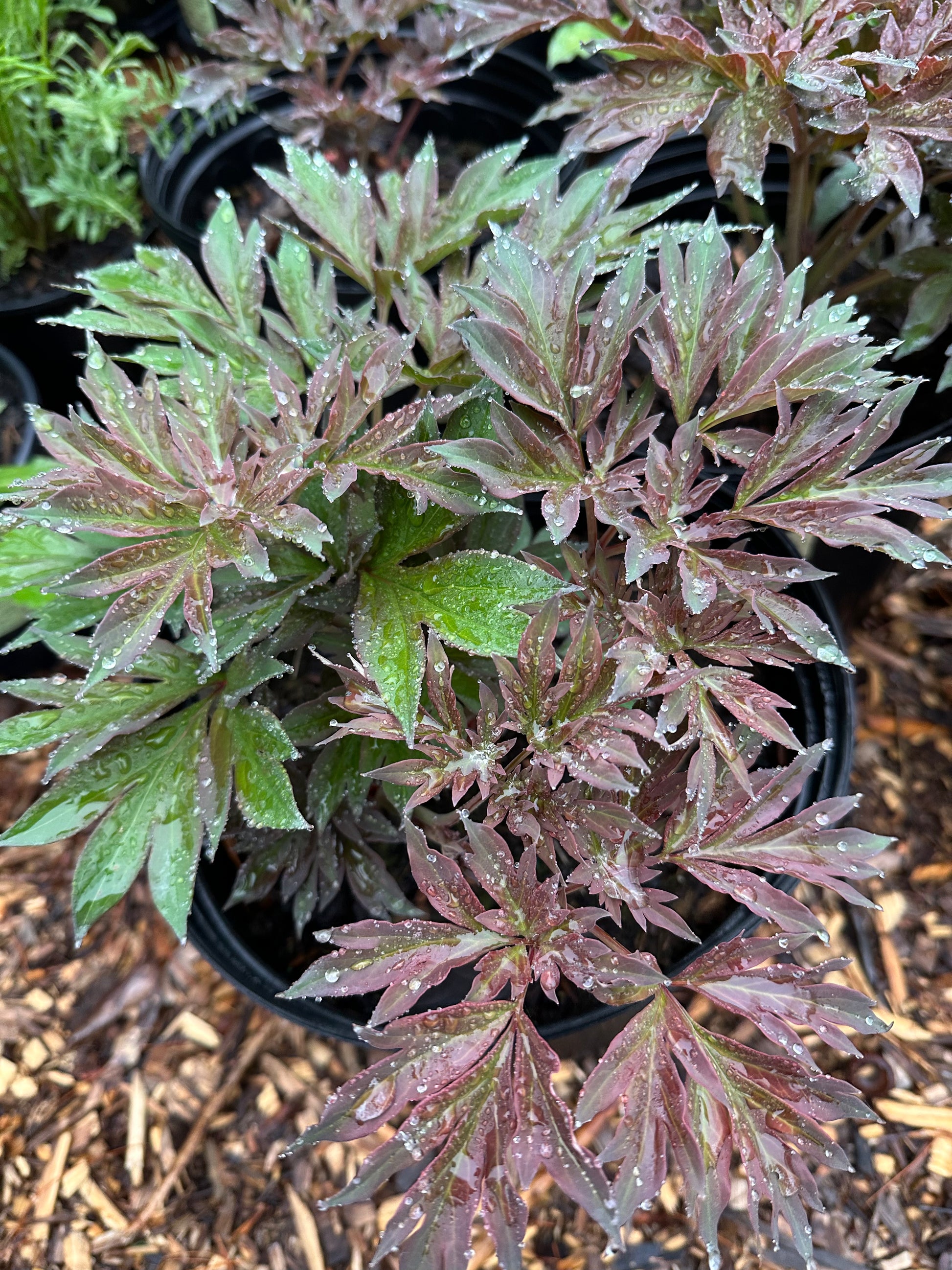 Image credit: flower- Van Berkum Nursery; Honey Petal Plants - the spring foliage covered with raindrops