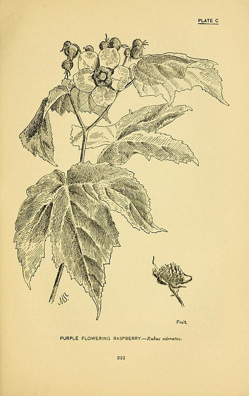 Origin/Distribution: Nova Scotia west to Ontario and Wisconsin, south down the Appalachian spine to Georgia and Alabama. Rubus odoratus has naturalized in Washington state, where it is not native, as well as parts of Europe, including the southeast of England. These plants were grown from seed collected in New England and Rubus odoratus is native to Maine.