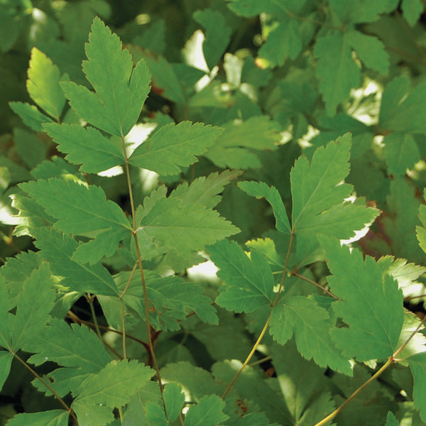 Basics: zones 4-9, 24-30" x 36", part sun to full shade, small, purplish-brown blooms in mid to late spring, but the foliage is the star of the show, light green and reminiscent of lovage or celery, these leaves display orange-y and red-purple tones as the season cools, drought tolerant once established when planted in shade, but in sunny positions will need consistent moisture to do well. Likes sandy or gravelly soils on the acid side.